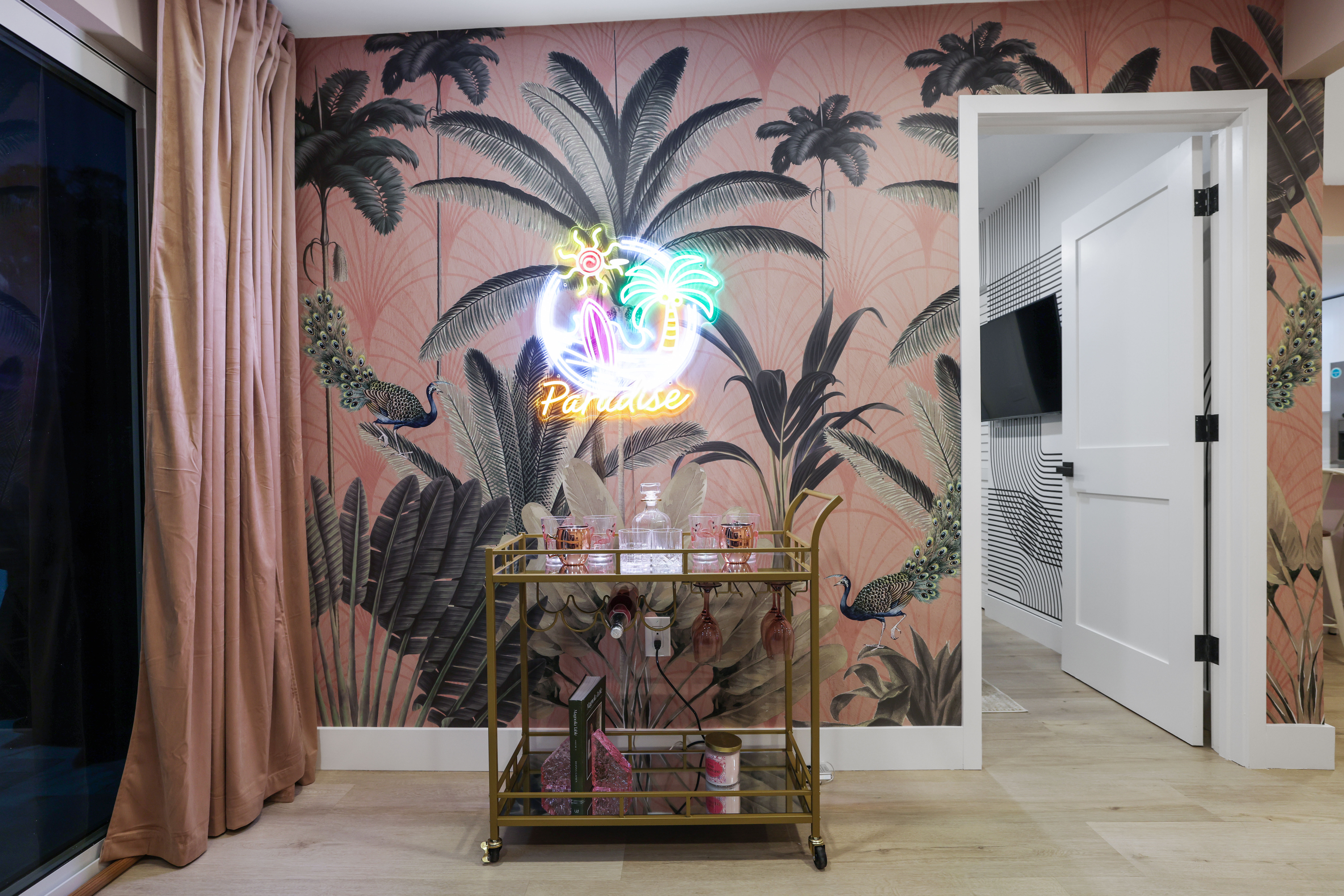 Welcome to “Las Olas Arcade.” Immerse yourself in nostaglia with vibrant murals, neon lights and six retro arcade machines.